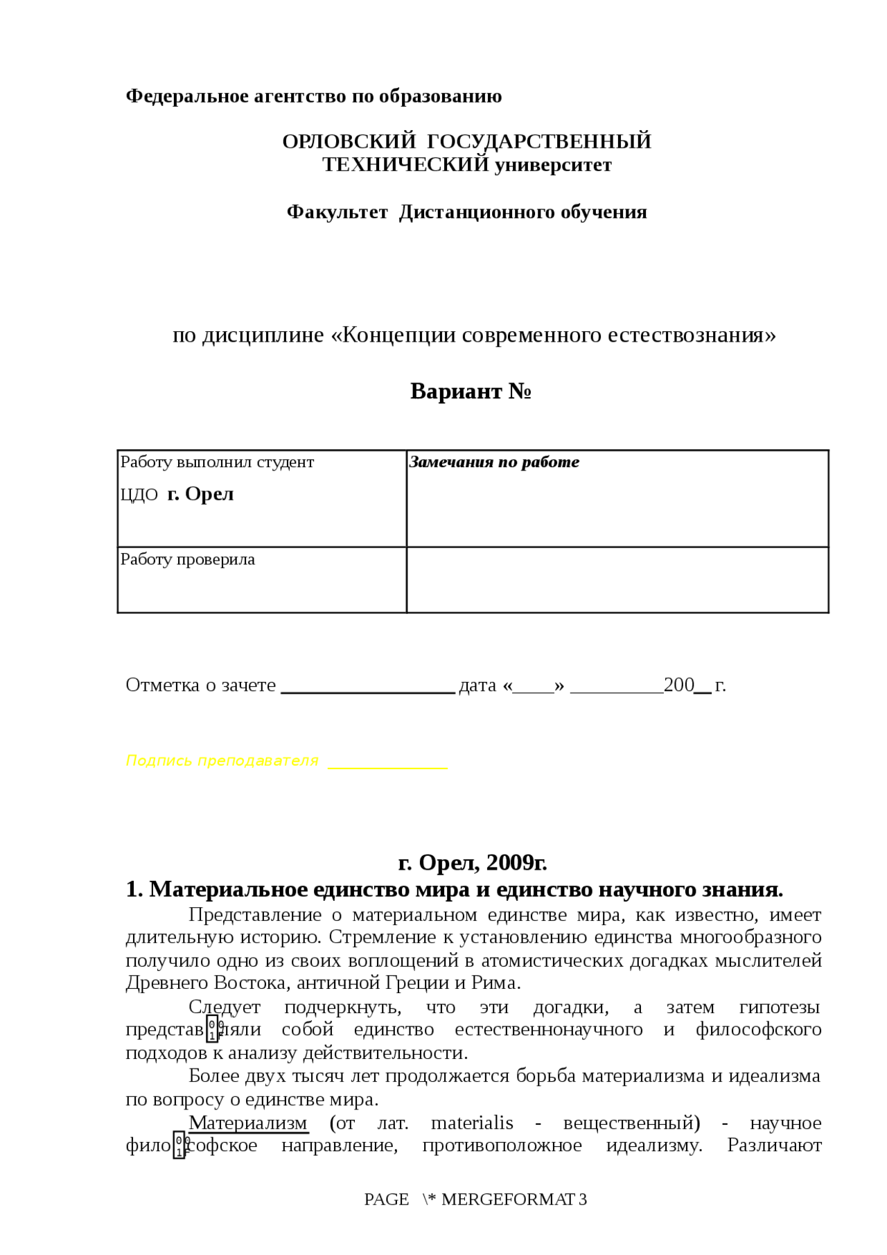 Естествознание соч