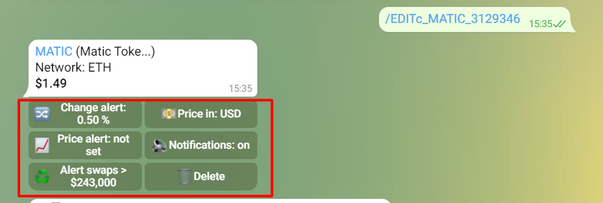 Предположим, что есть один кошелёк или группа кошельков (условно инсайдеров, китов) которые нужно мониторить перманентно. В данном случае будет разумно создать отдельный канал/группу конкретно для этих нотификаций.