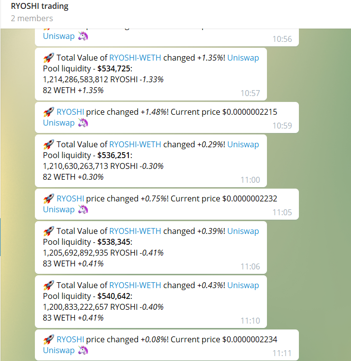 Создайте отдельные каналы/группы под разные монеты, т.к. есть вероятность что вы можете попасть на типичный pump and dump, или shitcoin, протокол которого вот-вот взломаю и выведут все средства. Таким образом вы будете получать своевременные уведомления, что возможно спасёт ваш депозит, или даже приумножит его, открыв возможности по арбитражным сделкам.
