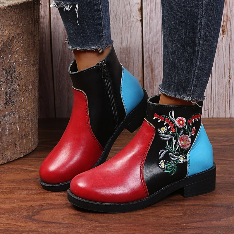 OZhjmjyanVДолго искали Ethnic Style Embroidery Printing Women's Boots Side Zipper Thick Heel Soft Bottom Martin Boots Retro Clashing Color Ankle Boots, но не могли найти? Предоставляем вашему вниманию Ethnic Style Embroidery Printing Women's Boots Side Zipper Thick Heel Soft Bottom Martin Boots Retro Clashing Color Ankle Boots по лучшей цене на рынке!