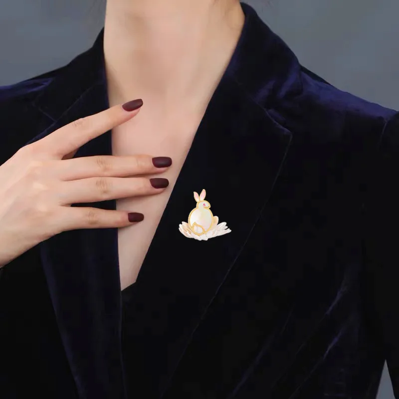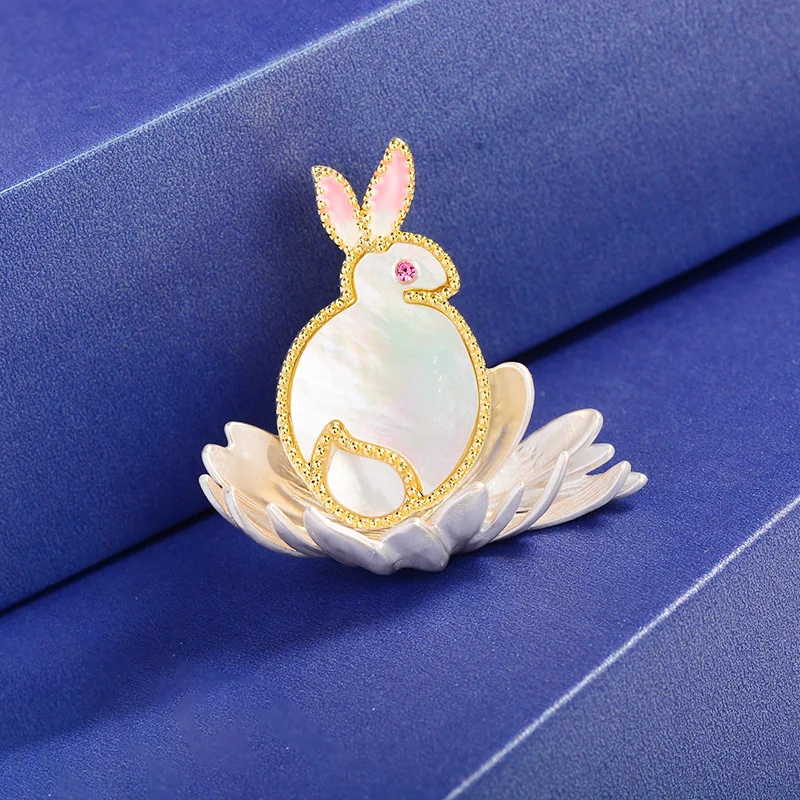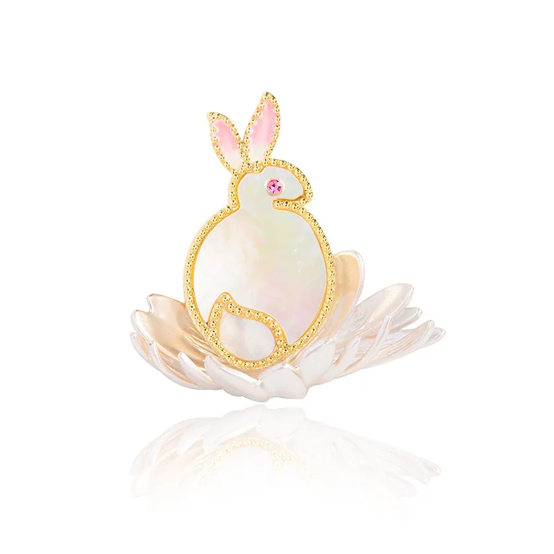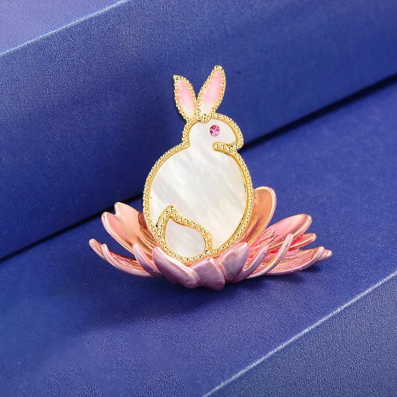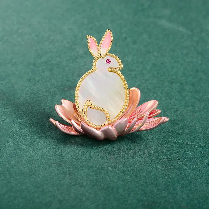 Ethnic Style Rabbit Lotus Flower Brooches High-end Enamel Copper Animal Jewelry Natural Shell Cute Brooch Pin Accessories Female - Купить с бесплатной доставкой