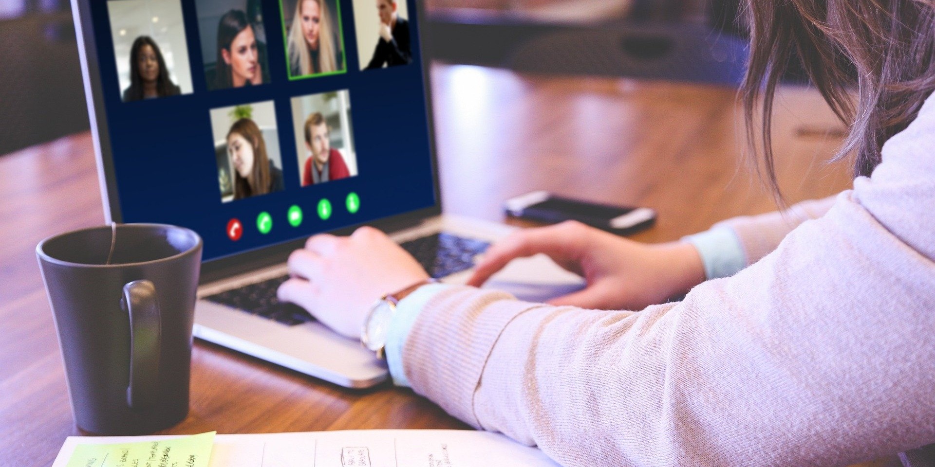 Brune chaude se touche sur le bureau