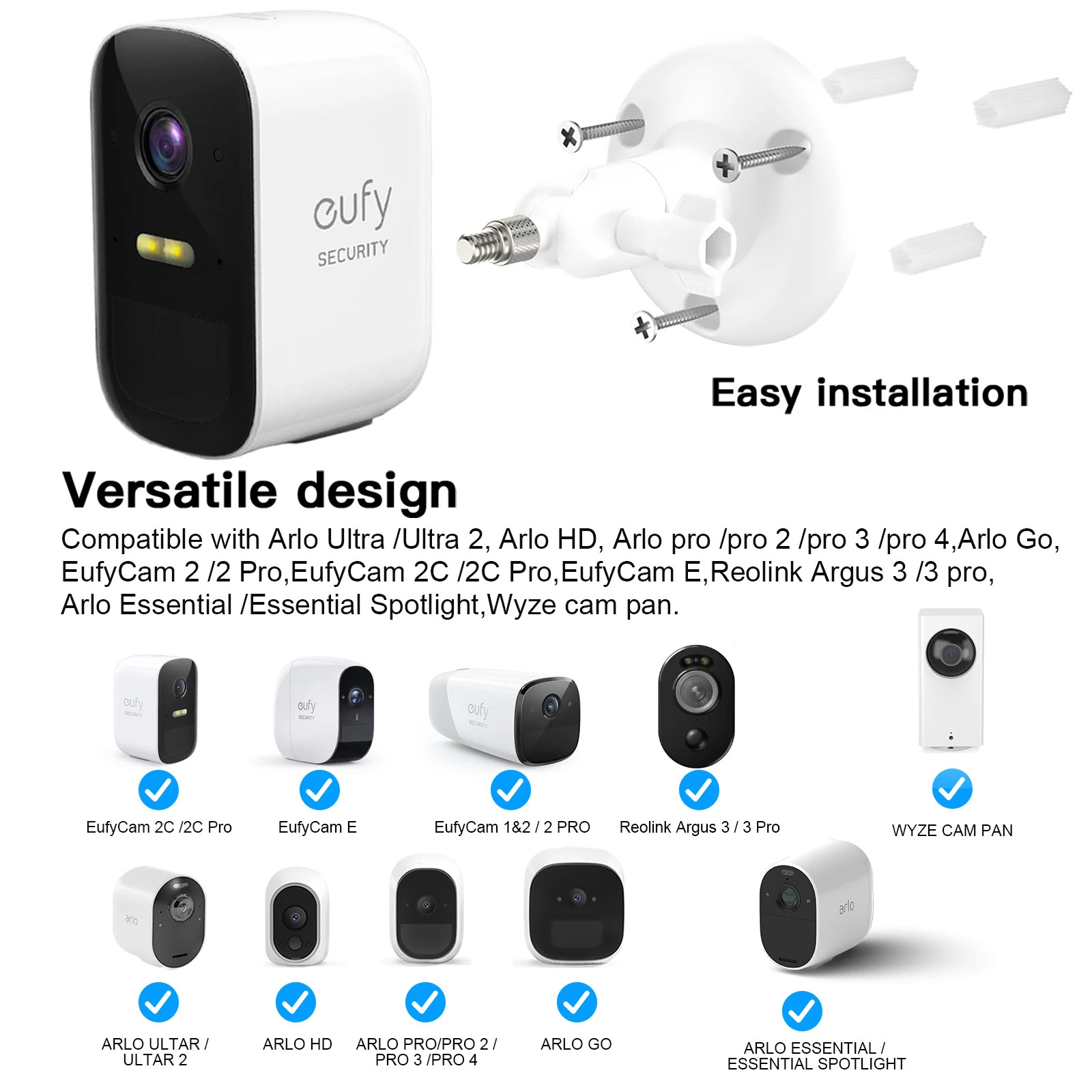 YBtesnWlszLooked for EufyCam Wall Mount Holder,360° Rotate Security Surveillance Camera Mounting Brackets for EufyCam 2/2Pro/2C/2C Pro/E Alro/Wyze for a long time, but could not find it? Bring to your attention EufyCam Wall Mount Holder,360° Rotate Security Surveillance Camera Mounting Brackets for EufyCam 2/2Pro/2C/2C Pro/E Alro/Wyze with the best price!