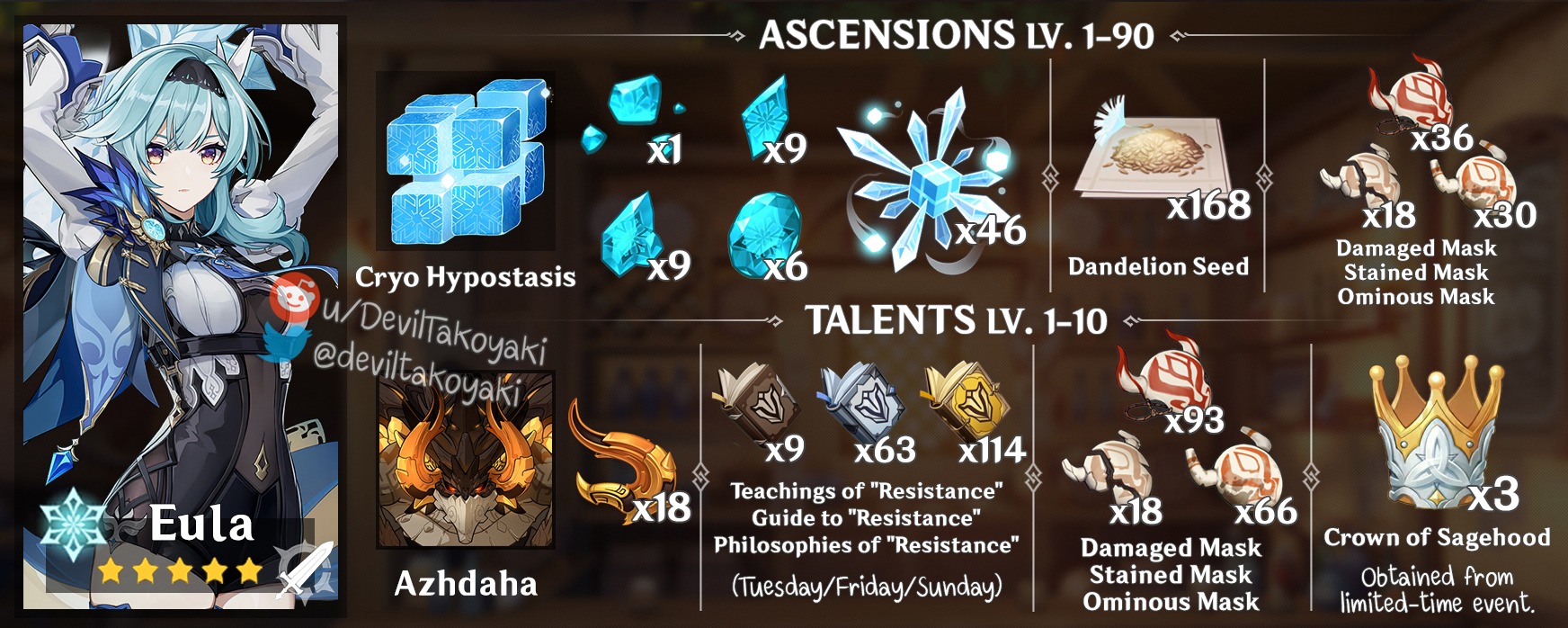 Piccola nota: buff tipo bennett e debuff tipo il superconduct durano 8s, mentre il burst di eula a pieni stack richiede 7s e non è switchabile durante il burst. Per sfruttare a pieno i potenziamenti si ha un margine di errore piccolissimo a meno che non si riproccano durante il burst.