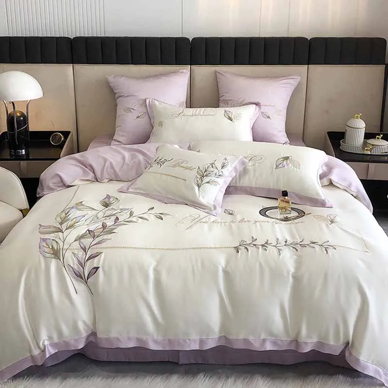 «Euro Luxury 100% Silky Sheet Bedding Set High-Grade Embroidery Silk Duvet Cover Set Sheet Pillowcase Queen King Bed Set 4pcs» по лучшей цене на рынке! Всего за 150$ (14250рублей)