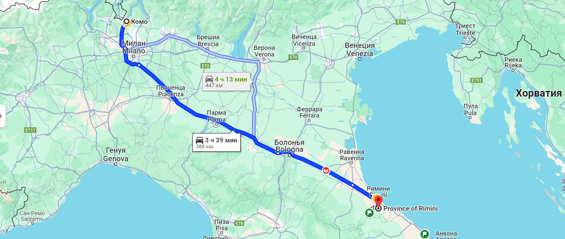 Комо - Римини. 388 км.