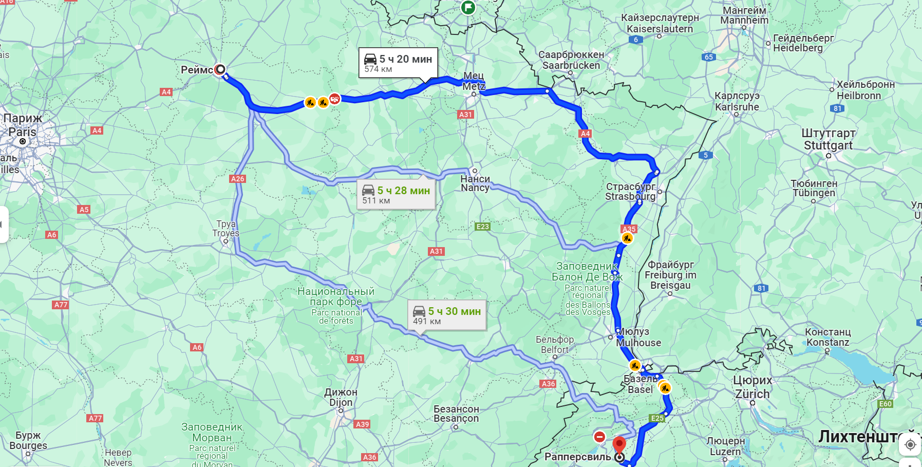 Реймс- Рапперсвиль. 574 км.