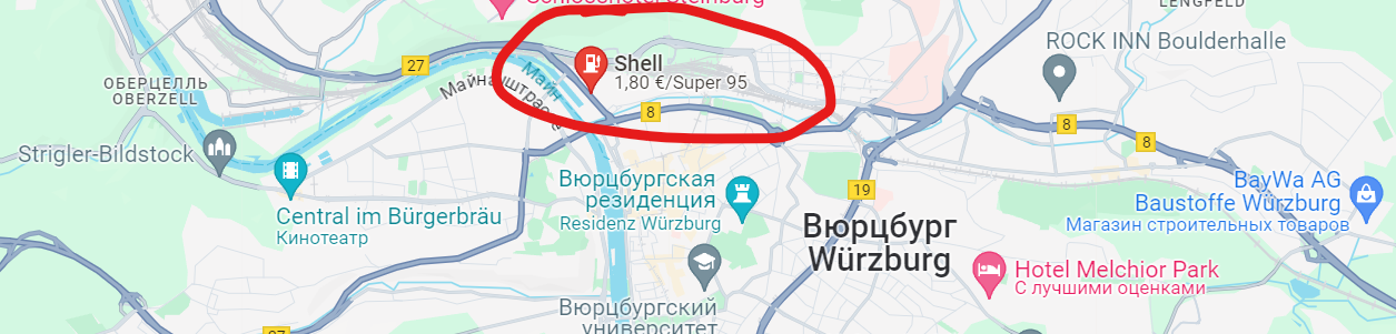 Приятно удивили дороги между небольшими деревнями в Германии. Их форма, покрытие и скоростные лимиты позволяют перемещаться между ними довольно быстро. Открытием стало то, что бензин на одной и той же АЗС утром может стоить меньше, чем вечером. И цены в текущий момент можно увидеть на google-картах.