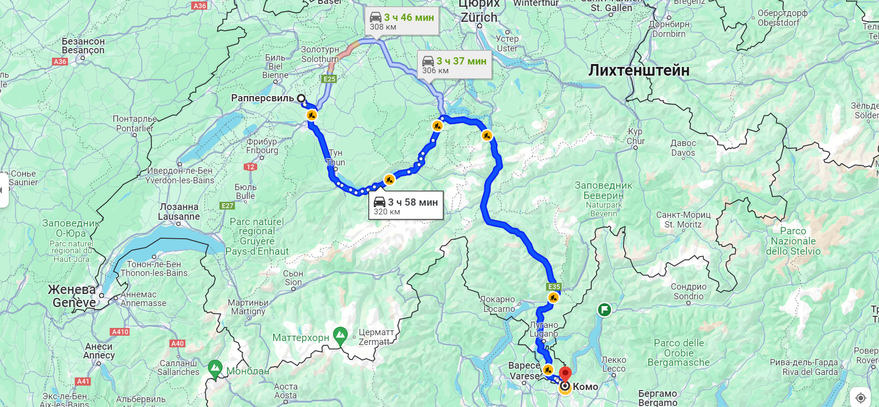 Рапперсвиль - Комо. 320 км.