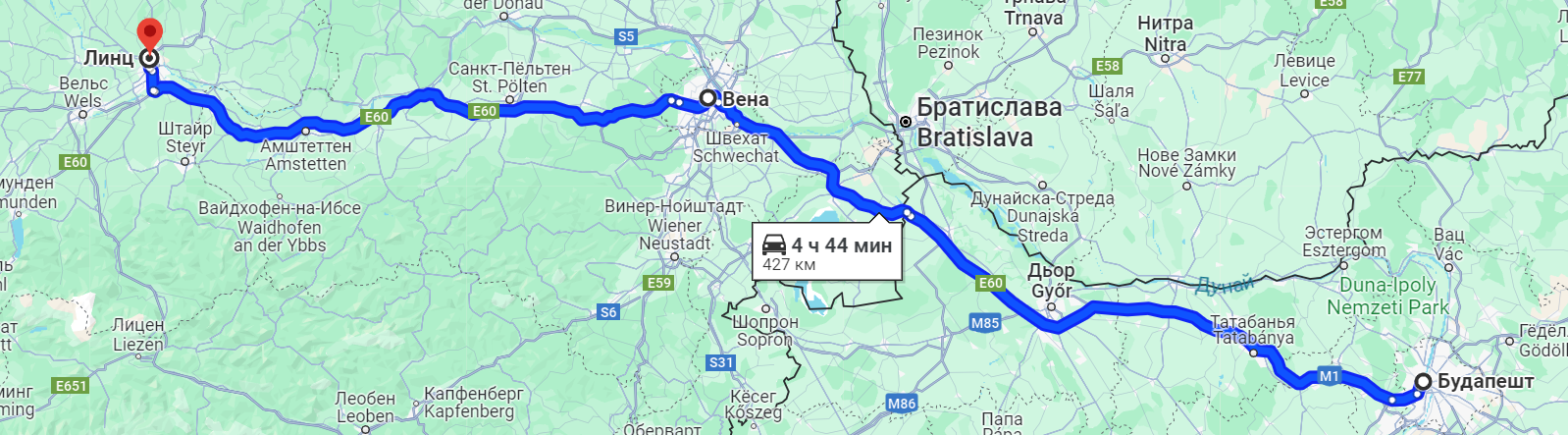 Будапешт - Вена - Линц. 427 км.