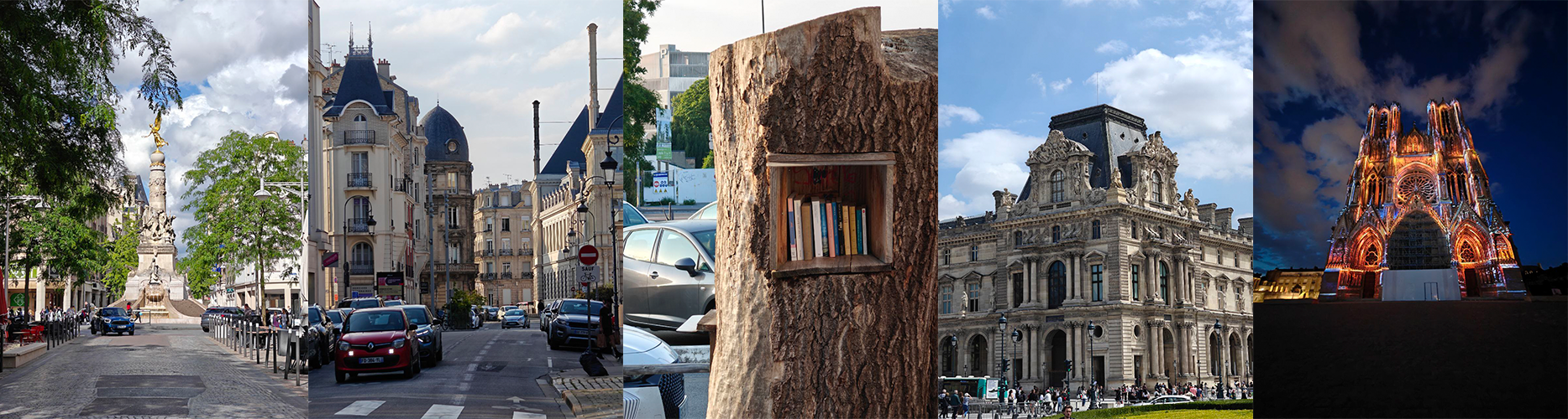 В Реймсе очень понравилось! Разный, комфортный, интересный. Начиная от простого пня в центре города, оборудованного под стойку для буккроссинга, и заканчивая свето-музыкальным шоу на соборе, в котором возводили на престол французских королей.