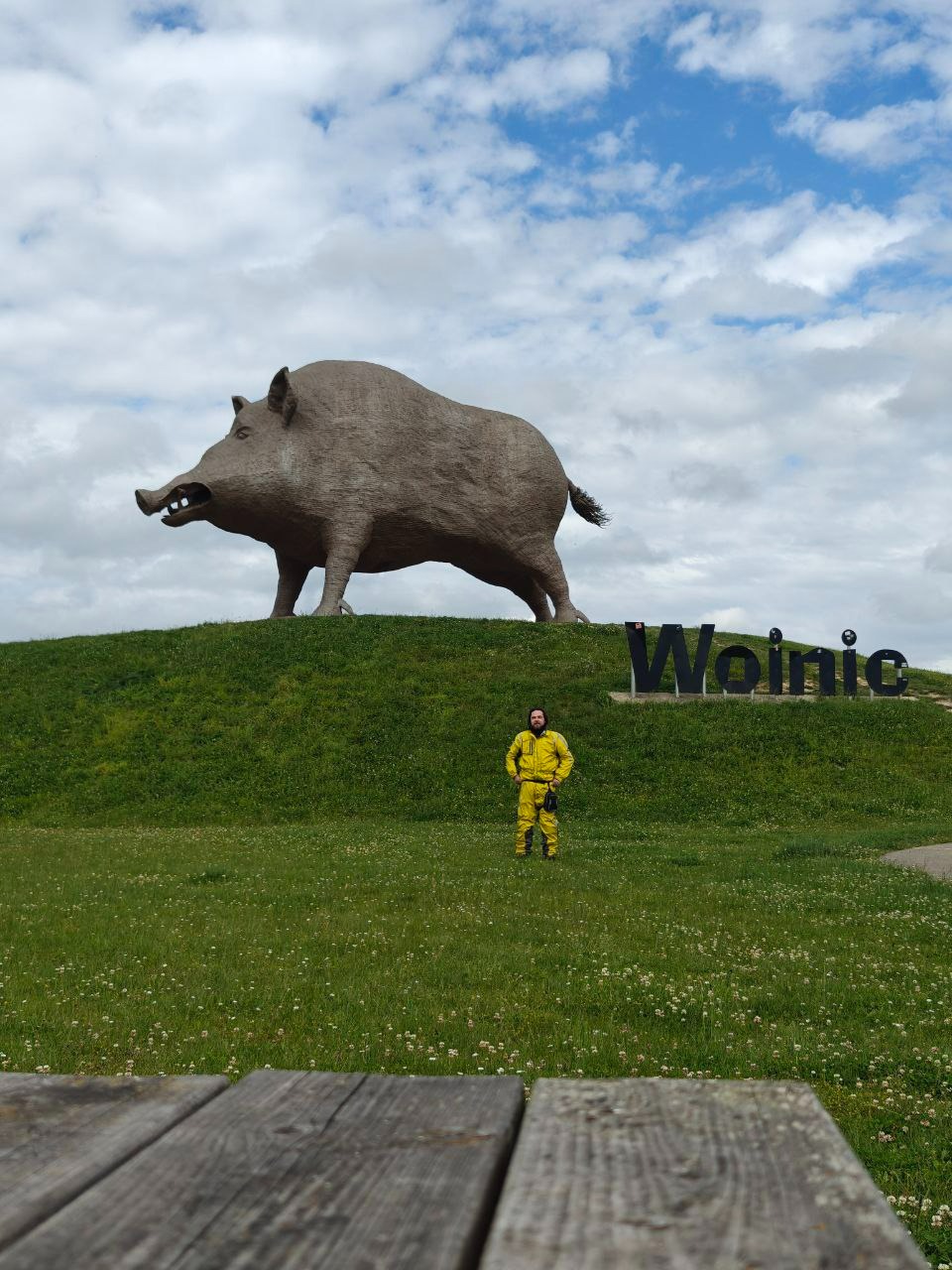 На въезде в Шампань, провинцию, в которой расположен Реймс, заехал к статуе "гиганту Арденн, самому крупному дикому кабану". Woinic - это не его имя, как я сперва предполагал, а просто звук, который он издает, то есть, "хрюк". У него, кстати, есть целый сайт.