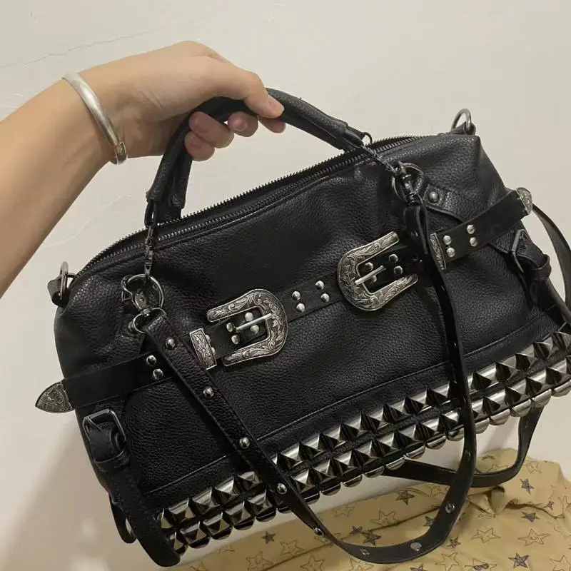 "European / American Fashion Punk Locomotive Style Metal Rivet Belt Buckle Shoulder Bag For Shoppers With Large Capacity Handbag" * Buy Now With Free Shipping Just For $38