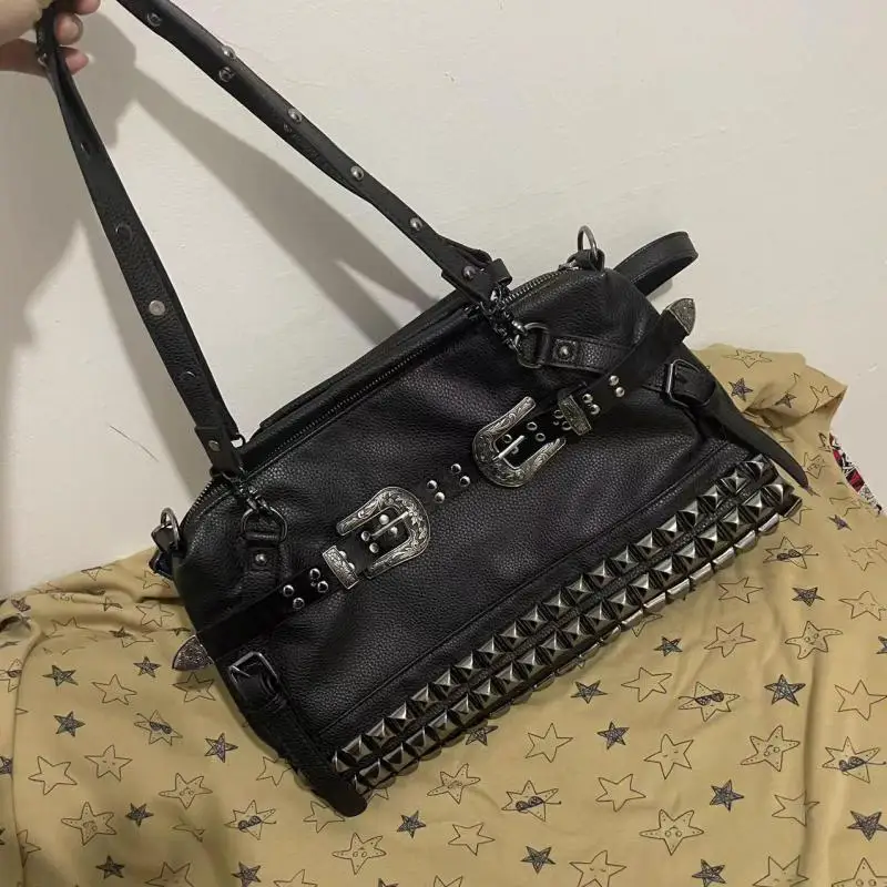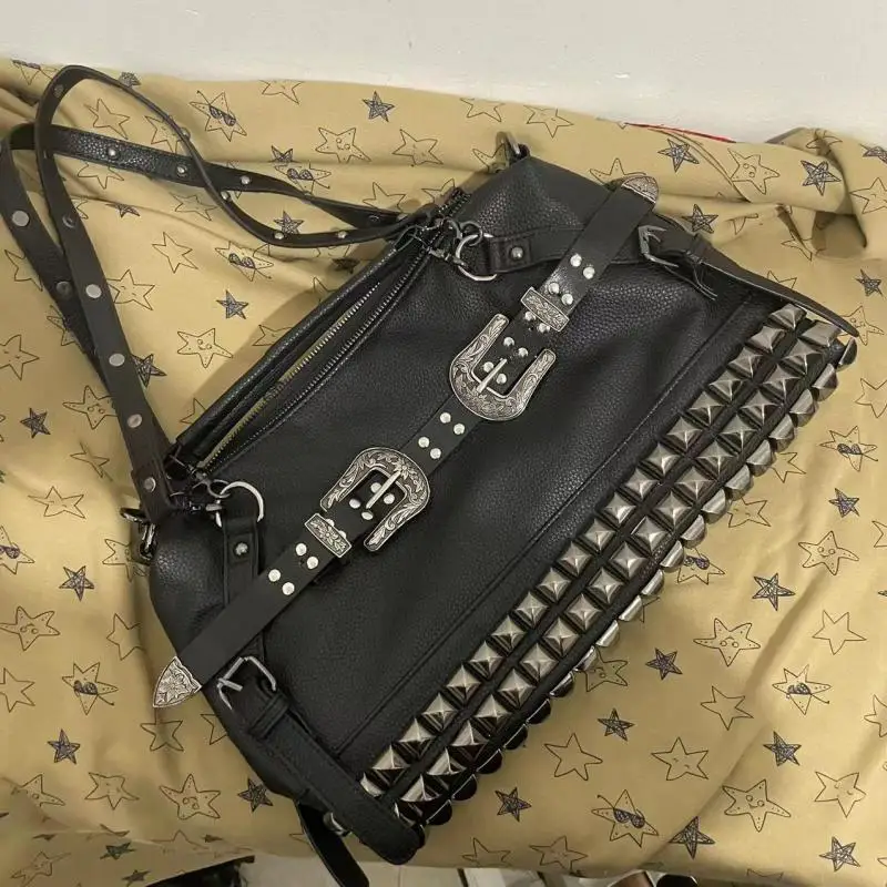 NPHhEHGiHere you can buy European / American Fashion Punk Locomotive Style Metal Rivet Belt Buckle Shoulder Bag For Shoppers With Large Capacity Handbag with free delivery to your post office.