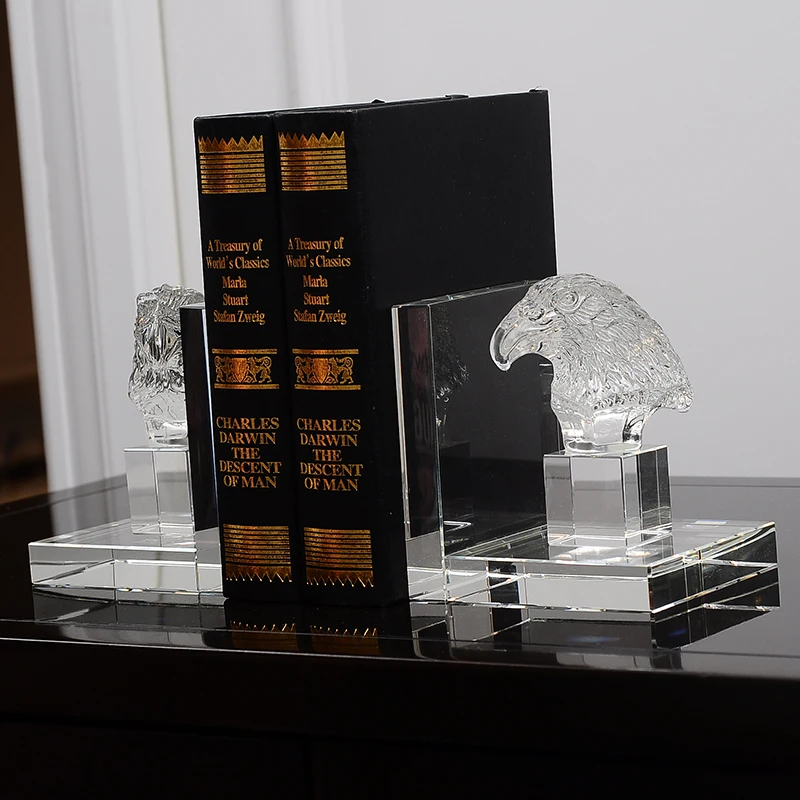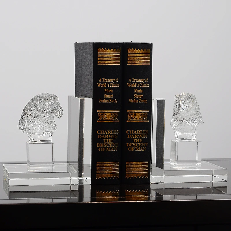 European Clear Crystal Eagle Head Bookends Pair With Square Bottom Base Hand Crafted Standing Embossed Animal Decor Gift - Купить с бесплатной доставкой
