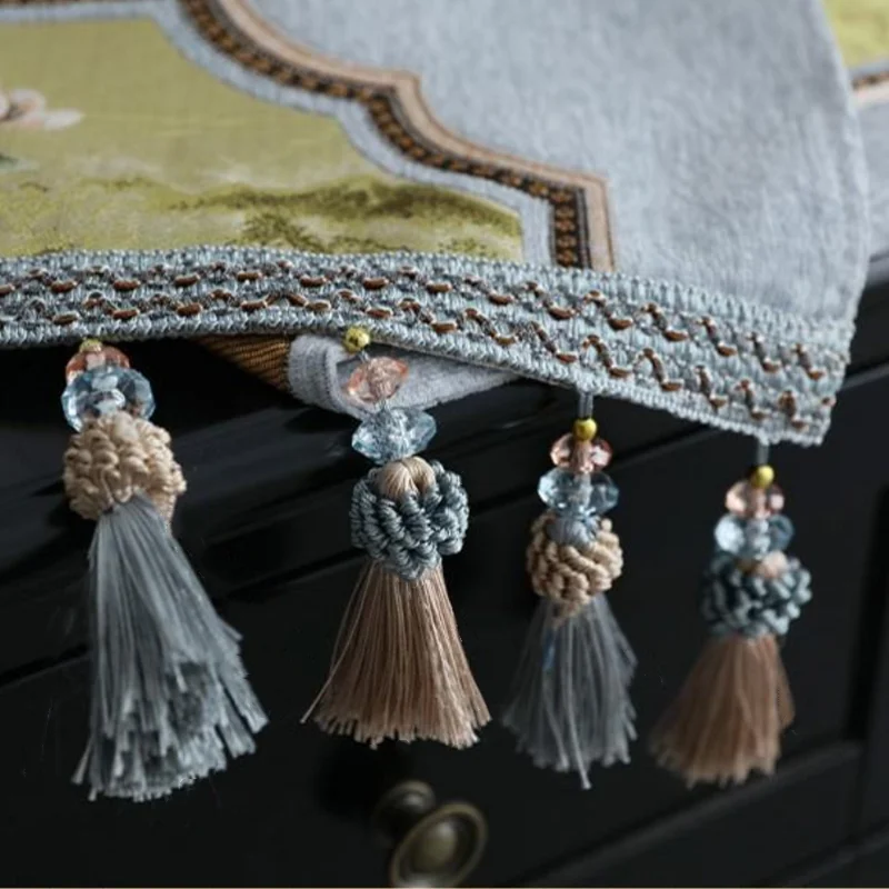 «European Embroidery Table Runners Luxury Rectangle TV Cabinet Cover Cloth Tassel Tablecloth Dustproof Cover Wedding Decoration» по лучшей цене на рынке! Всего за 23$ (2185рублей)
