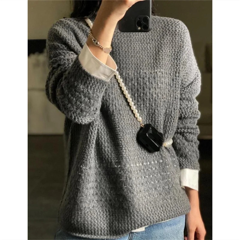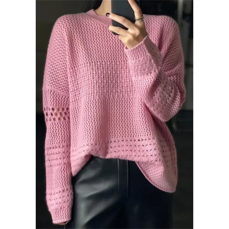 «European Station Hollow Crew Neck Sweater Autumn And Winter Wool Knit Women's Loose Sweater 2022 Spring And Autumn Soft Waxy Top» по лучшей цене на рынке! Всего за 39$ (3705рублей)