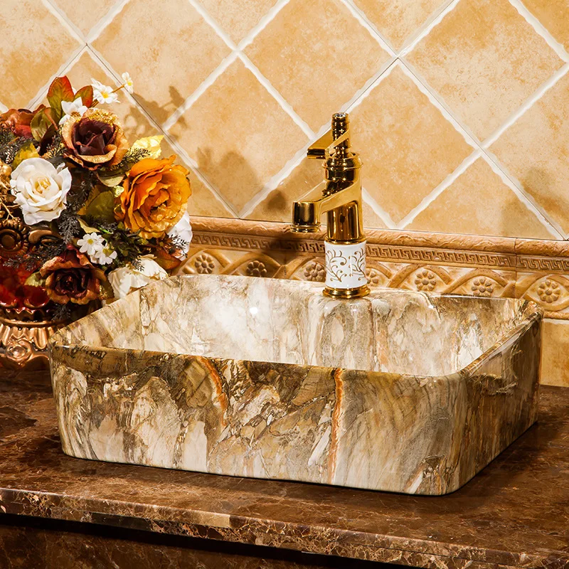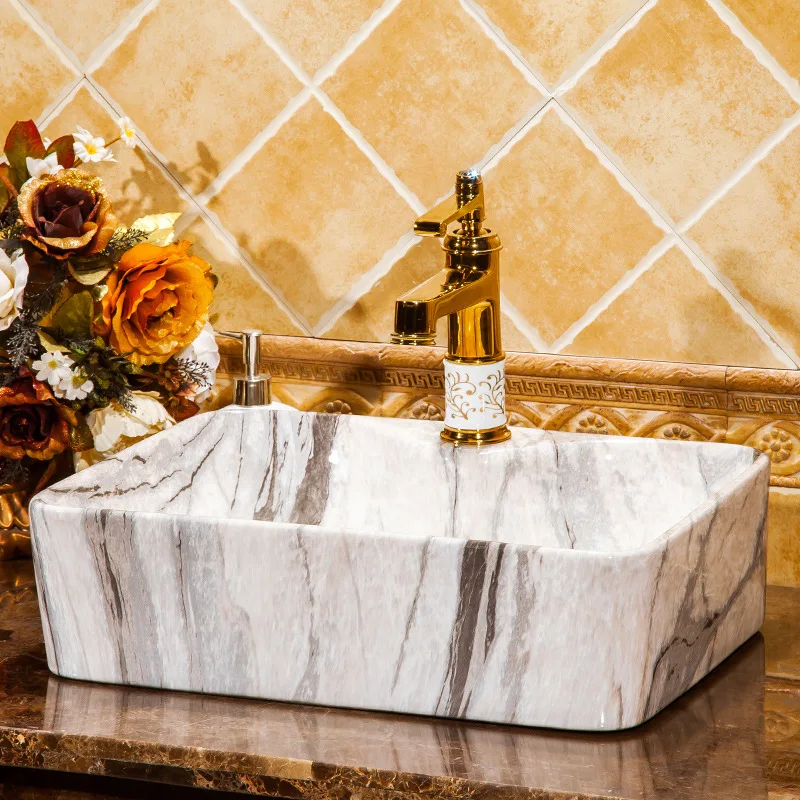 PEnFnzYVKHere you can buy European-Style Imitation Marbling Ceramic Table Basin Art Wash Basin Rectangular Washbasin Bathroom Wash Inter-Platform Basin with free delivery to your post office.