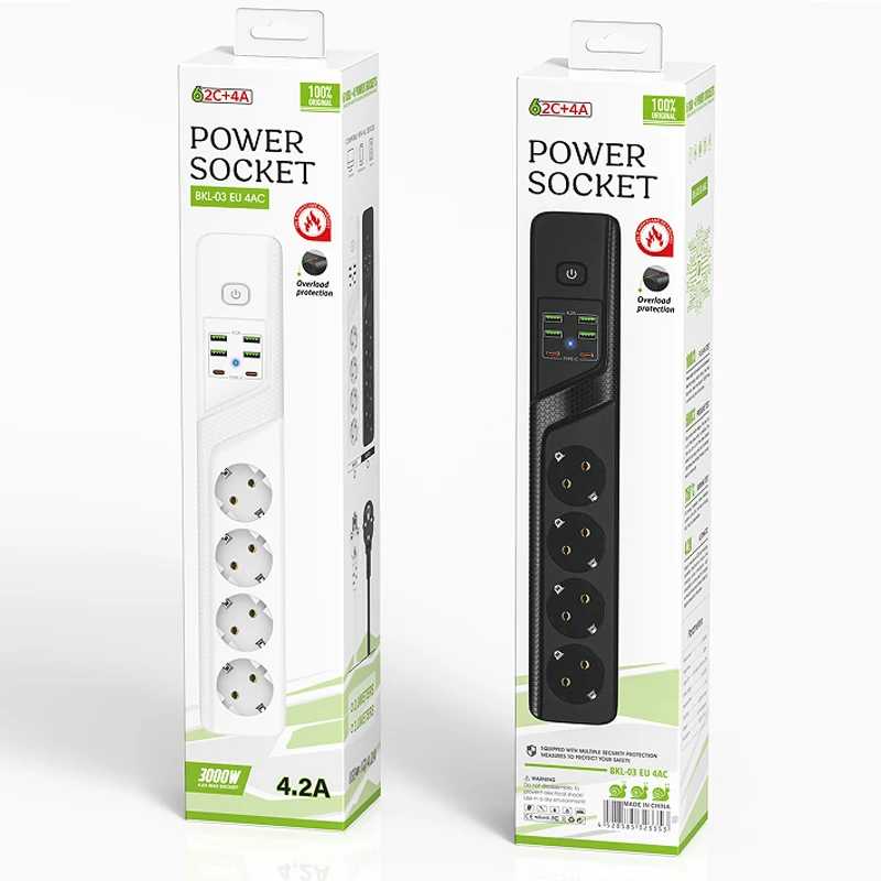 European power socket with Overload Protection, 4AC Outlets+6USB,with Type-C Charging port 2-meter cable Expansion power strip - Купить с бесплатной доставкой