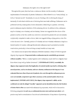 Argumentative Essay On Euthanasia - 2027 Words | Internet . . .