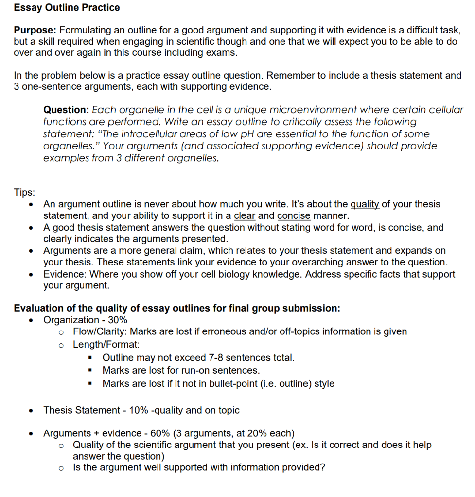 Evaluation essay outline . As step two, we always recommend starting with the outline . No matter what kind of writing are you working at, it is always a good idea to start by creating an outline of your future essay . This is a chance for you to carefully think of what arguments and facts are going to work best for your topic and in what order . . .