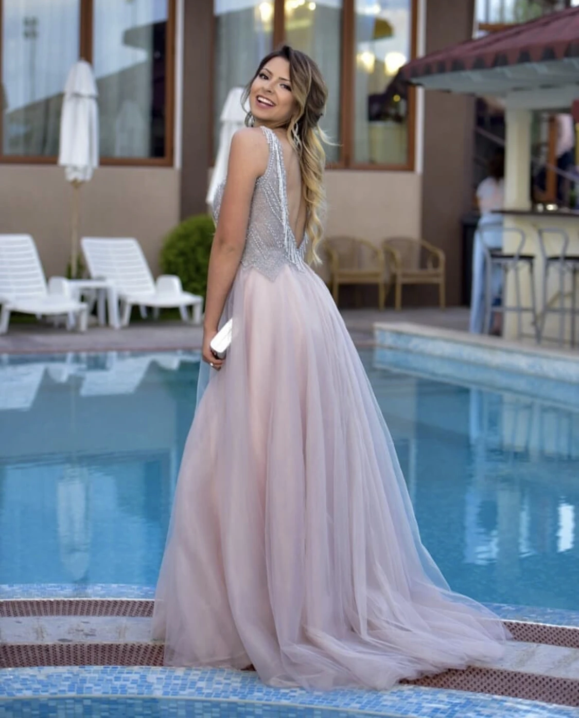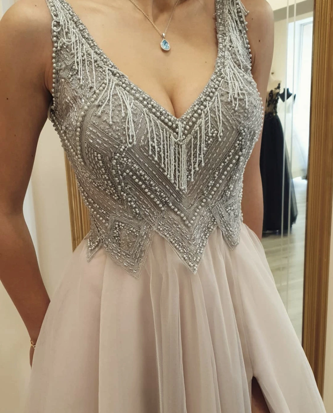 "Evening Dress A-Line V-Neck Tank Lace Sequined Beads Pearls Backless Side Slit Floor Length Sweep Train Party Prom Gown New" * Buy Now Just For 97$