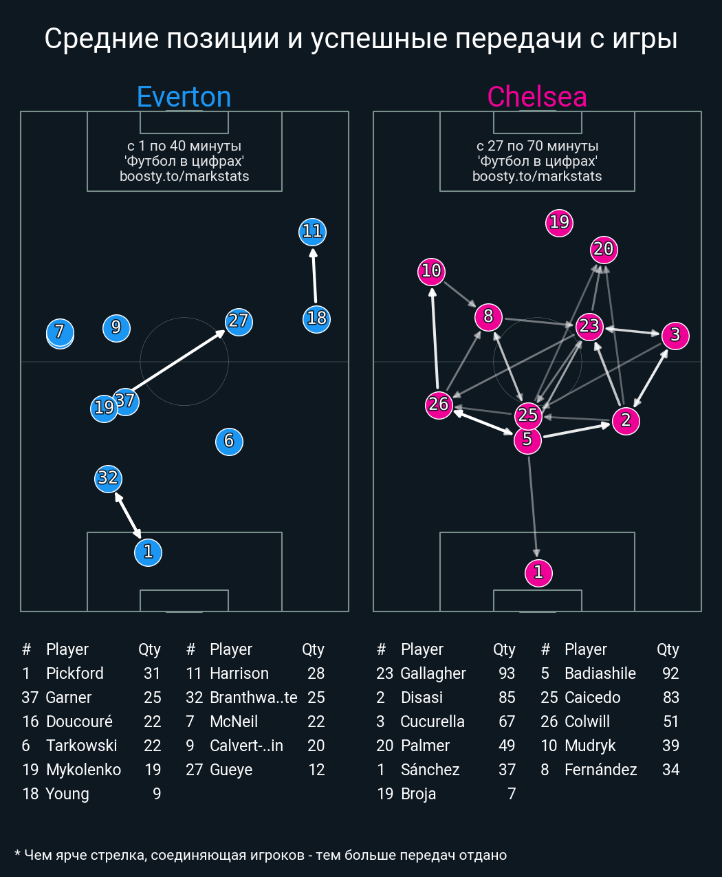 40 успешных передач из 51 попыток (2 под удар, 9 с продвижением, 15 на трети соперника)