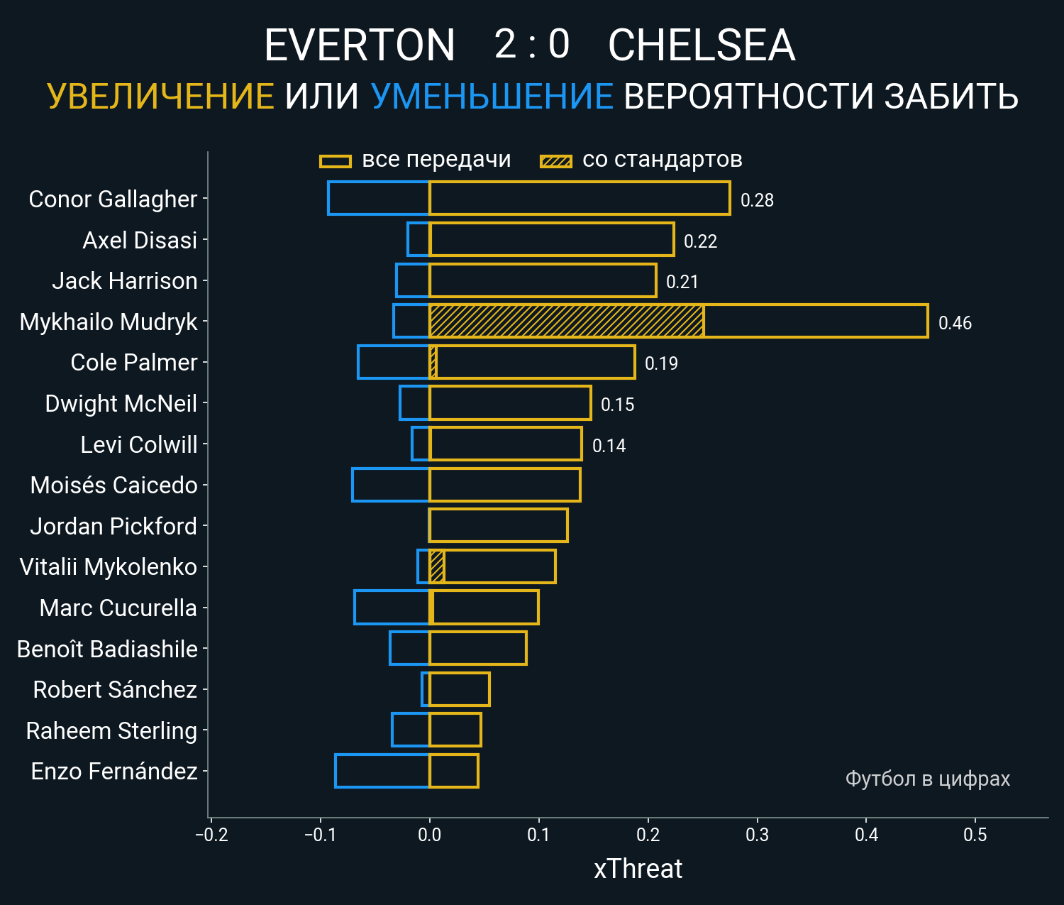 0.21 очка xT (+0.25 со стандартов)