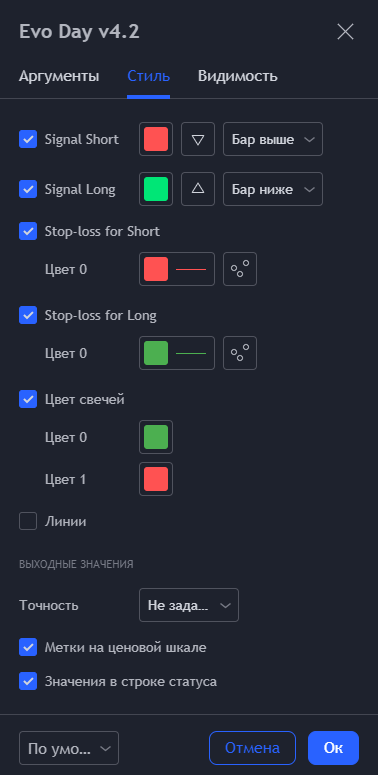 Дополнительные настройки индикатора: