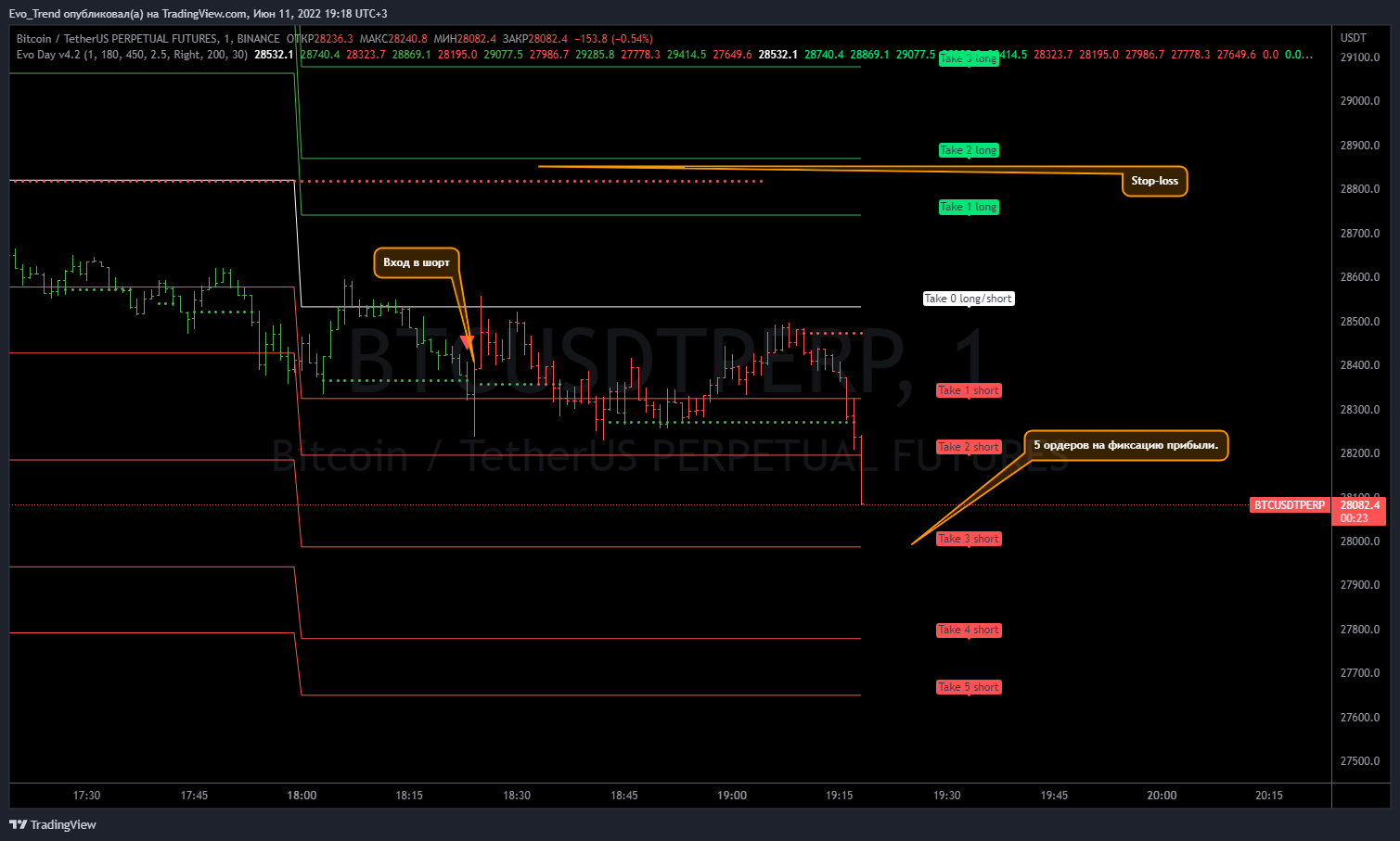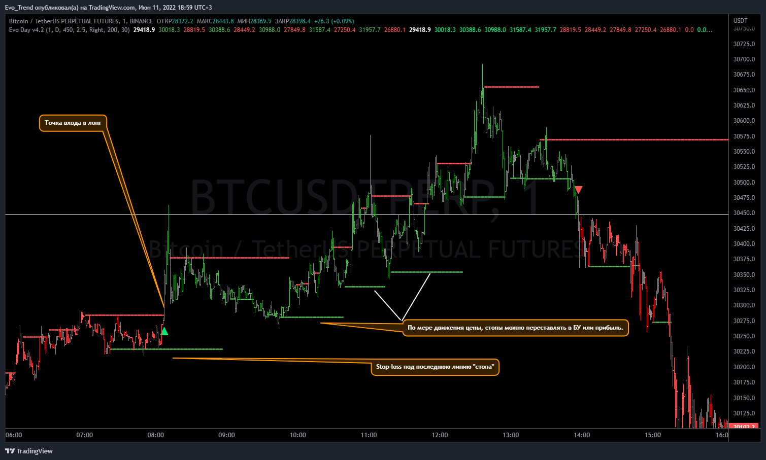 Evolution of TradingРазработанный индикатор для сервиса TradingView позволяет торговать нашим клиентам на любых биржах и парах, включая криптовалюты, акции и национальные валюты.