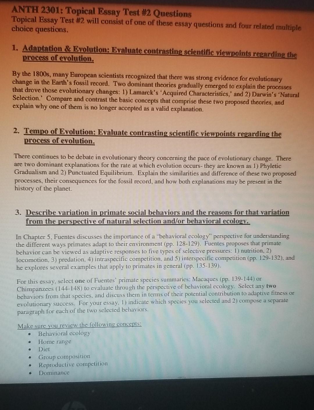 Evolution Essay Questions