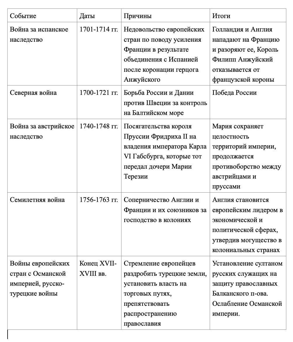Европейское чудо 8 класс таблица