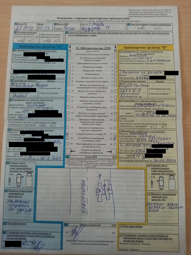 Европротокол Фото Образец Заполнения 170 фотографий