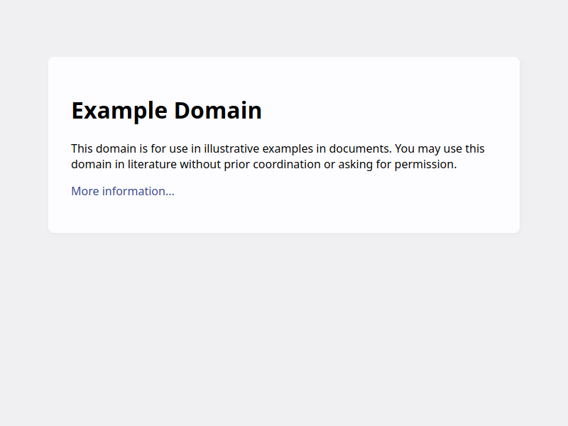 Example DomainSourcescreenshots: 1This domain is for use in illustrative examples in documents. You may use this domain in literature without prior coordination or asking for permission.More information...