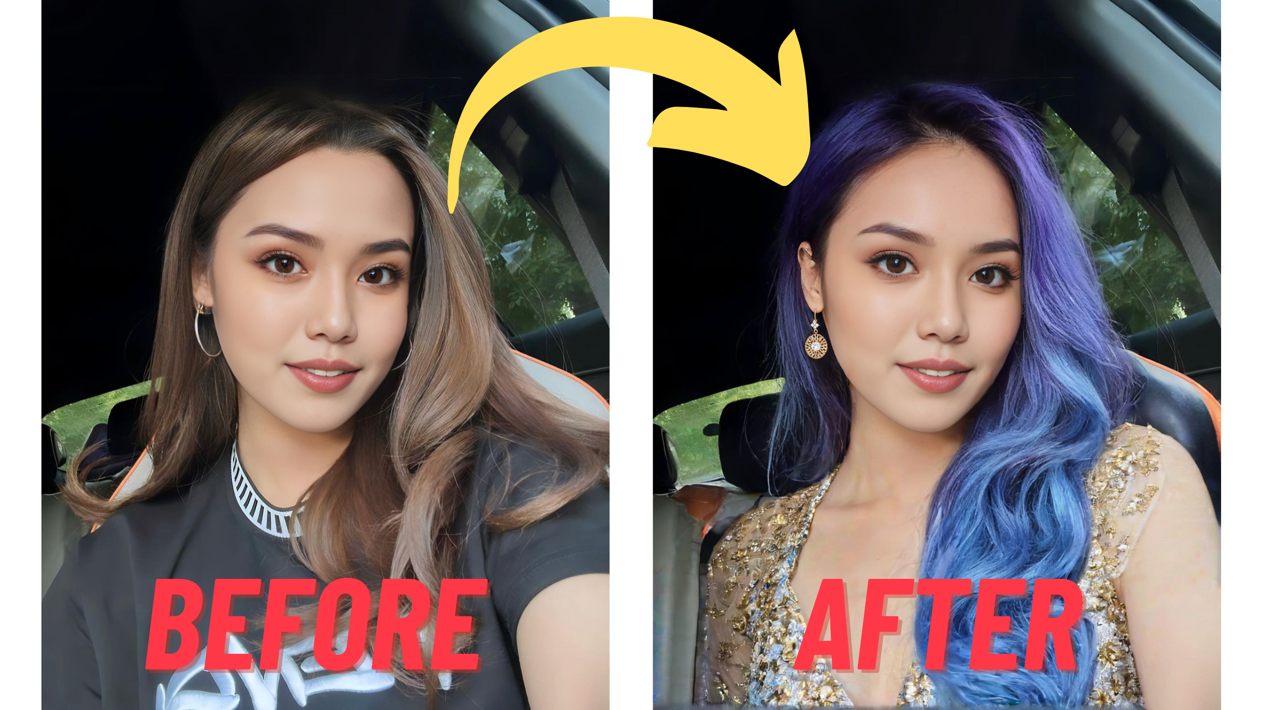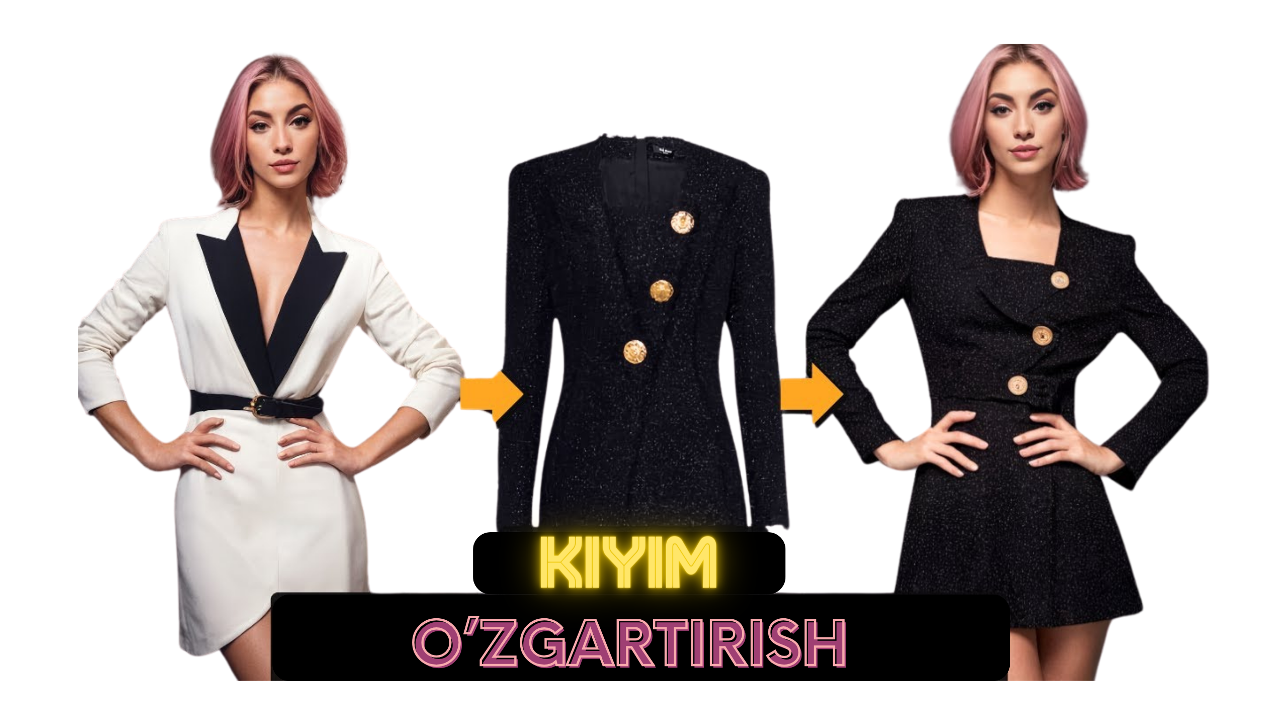 3) Outfit Swap - Rasimda Ko'ylak, soch turmagi va ko'plab detallarni almashtirish