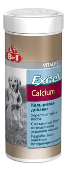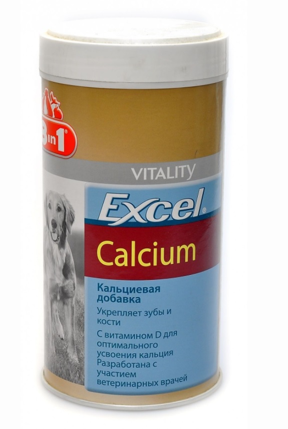 8 in 1 Excel Calcium — это кормовая добавка для щенков и взрослых собак с кальцием и фосфором, обеспечивающая здоровье костей и зубов . Формула обогащена витамином D3 и обеспечивает оптимальное усваивание кальция . Показания к применению