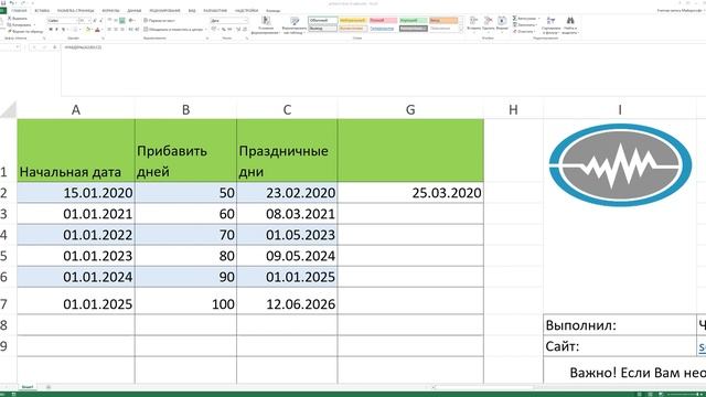 Excel прибавить рабочие дни