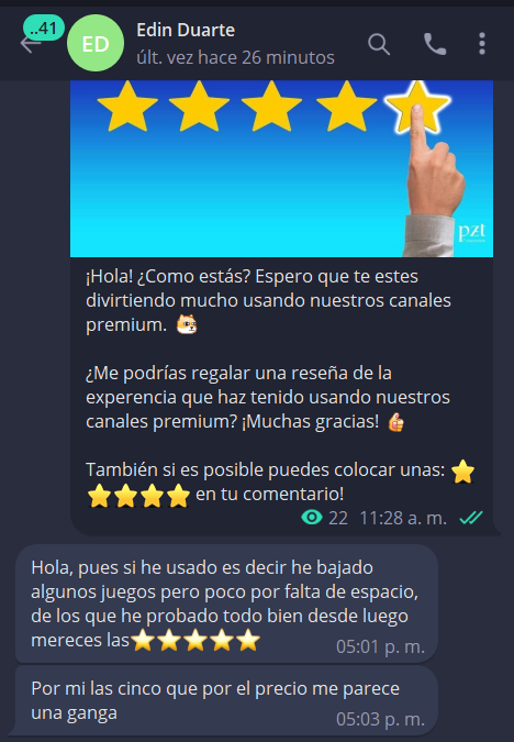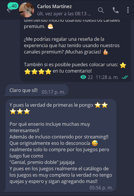 Experiencias de usuarios.BitDroidTe compartimos algunas reseñas de nuestros usuarios que han comprado su acceso a nuestros canales premium.