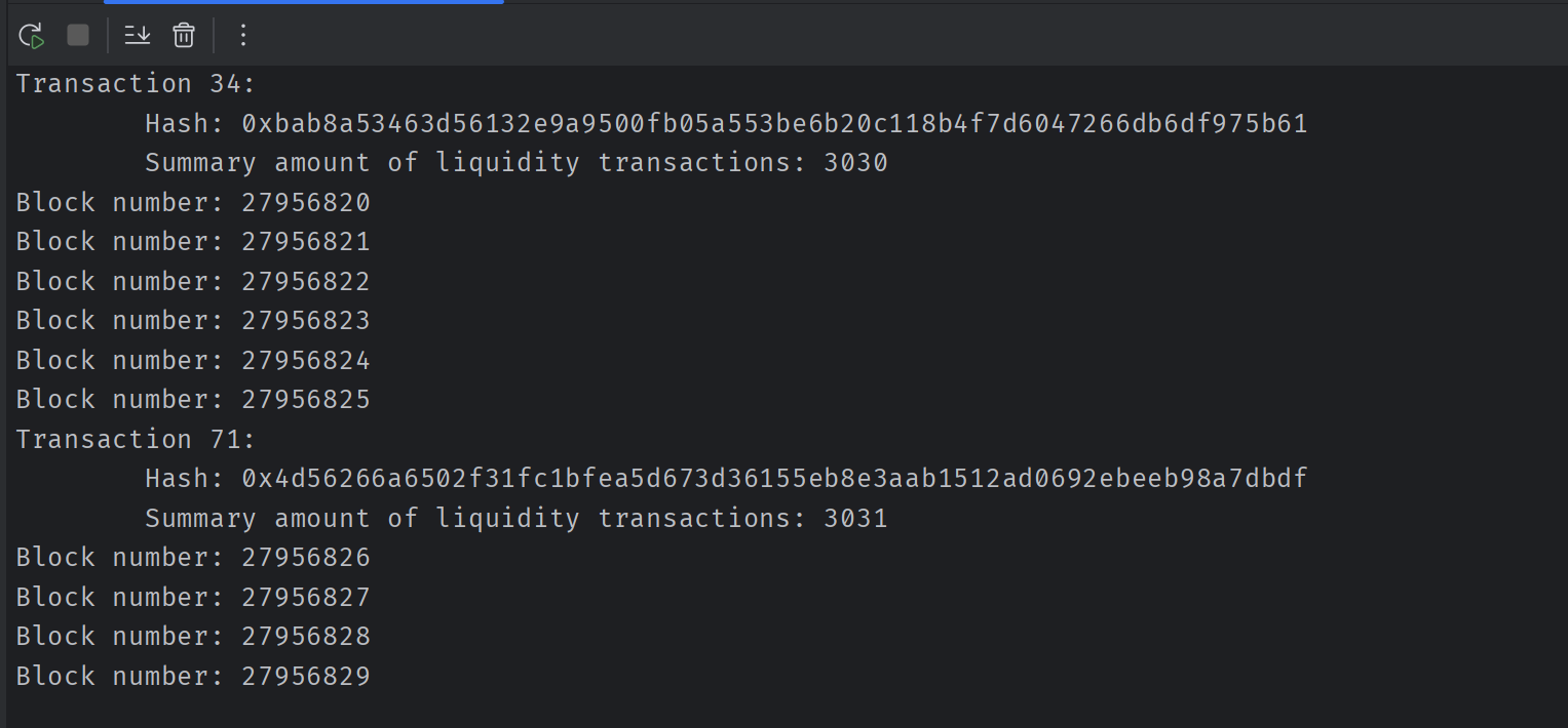 Специально написал для поста скрипт, который считает количество транзакций с залитием ликвидности в контракты от определенного блока до определенного.