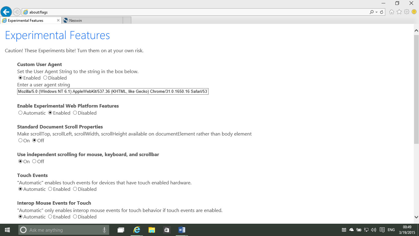 Experimental web features