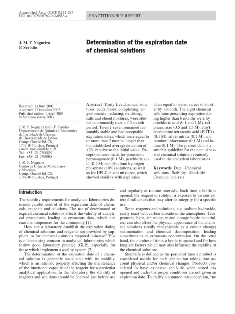 Shelf Life vs . Expiration Date of a Chemical Standard