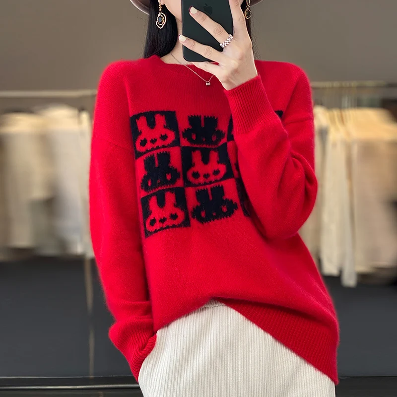 «Explosions Red Nine-Square Rabbit Sweater Women's Round Neck Pullover Wool Knitted Bottoming Shirt Thickened Inside» по лучшей цене на рынке! Всего за 44$ (4180рублей)