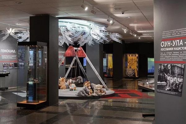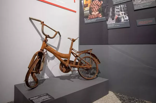 En el centro de la exposición se ubica una instalación, dedicada a los niños de Donbás. Ahí se muestra una bicicleta quemada desde el lugar donde fue asesinado un niño de cinco años. De acuerdo con Senichkin, pronto llegarán al museo artefactos horripilantes: muestras de juguetes donde los militares ucranianos escondieron minas.