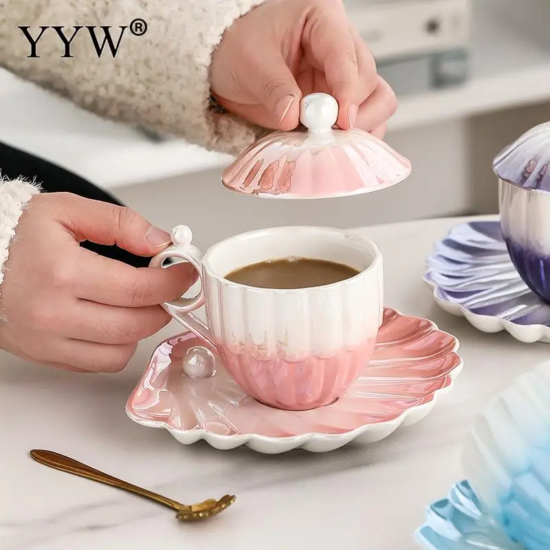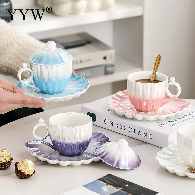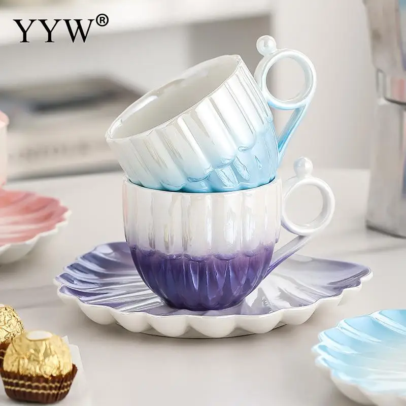 PfgkYgGhBHere you can buy Exquisite Gradient Colorful Ceramic Coffee Cup Set with Pearl Pattern Dish Wedding Atmosphere Afternoon Tea Smooth Handle Cups with free delivery to your post office.