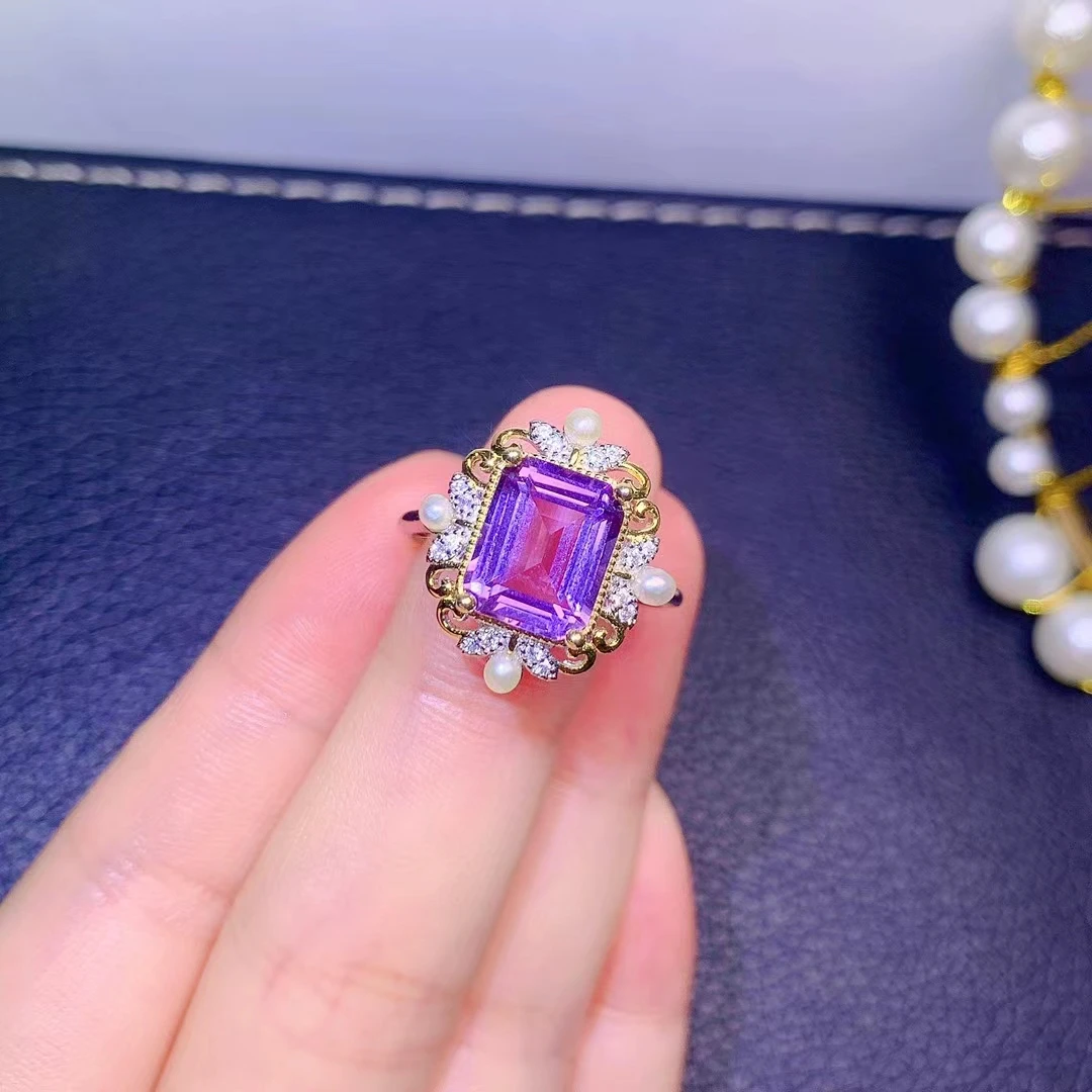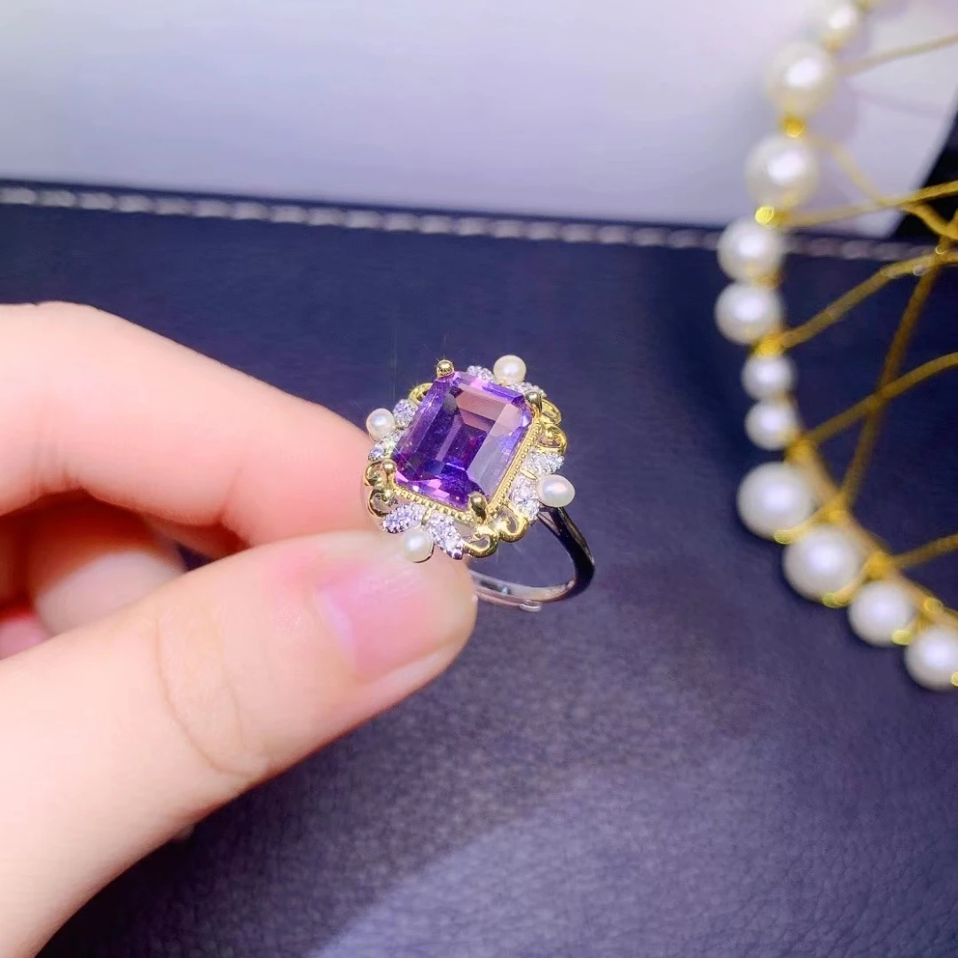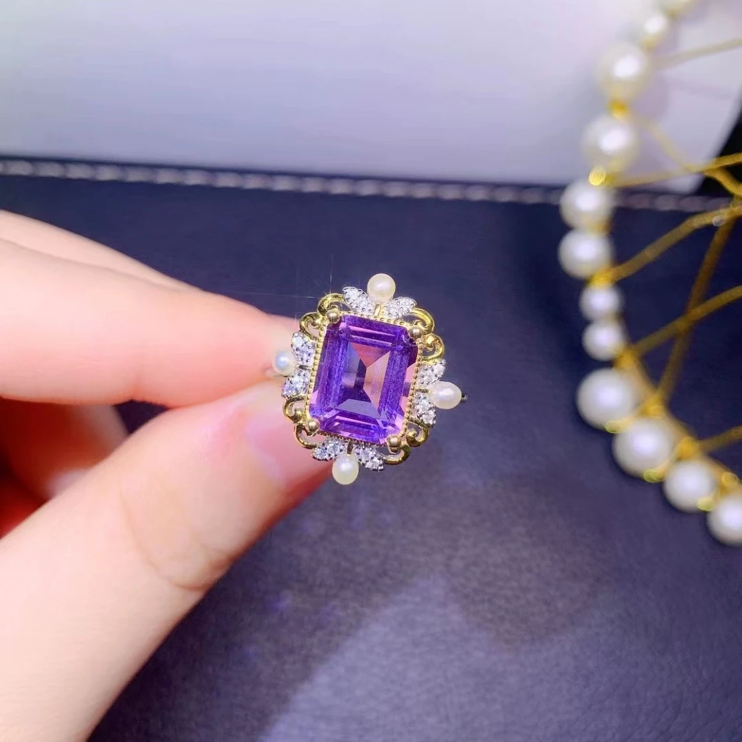 mPrABkDPHere you can buy Exquisite Jewelry 925 Sterling Silver Inset With Gemstone Women's Popular Fashion Rectangle Amethyst Adjustable Ring Support Det with free delivery to your post office.
