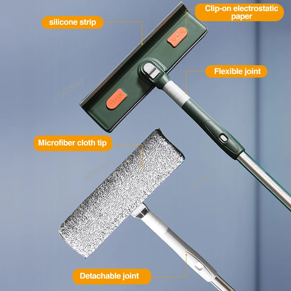 Extended Window Cleaning Mop Window Cleaner Glass Wiper with Silicone Scraper Multifunctional Household Cleaning Tools - Купить с бесплатной доставкой