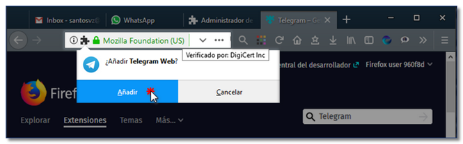 Como instalar Telegram en Firefox: