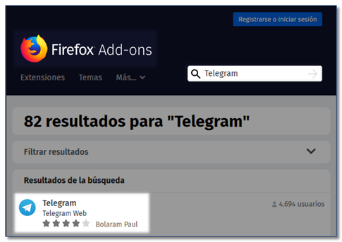 Extensión Telegram para Firefox