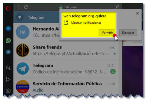 Como habilitar Telegram en Opera