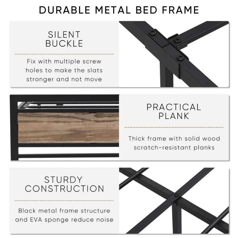 «Extra Large Metal Platform Bedstead with Wooden Headboard and Footrest Heavy Mattress Foundation with Batten Support[US Stock]» по лучшей цене на рынке! Всего за 238$ (22610рублей)